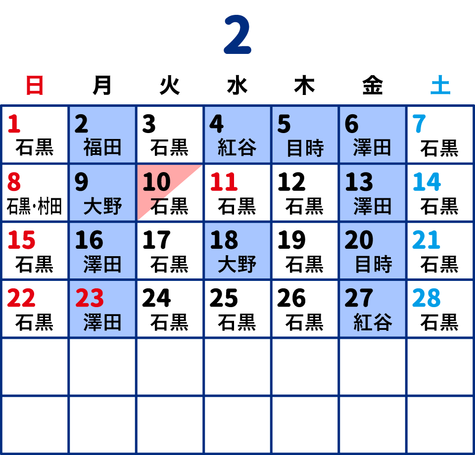 不定期に休診の診療科がございますので、お電話もしくは出勤カレンダーからご確認ください。