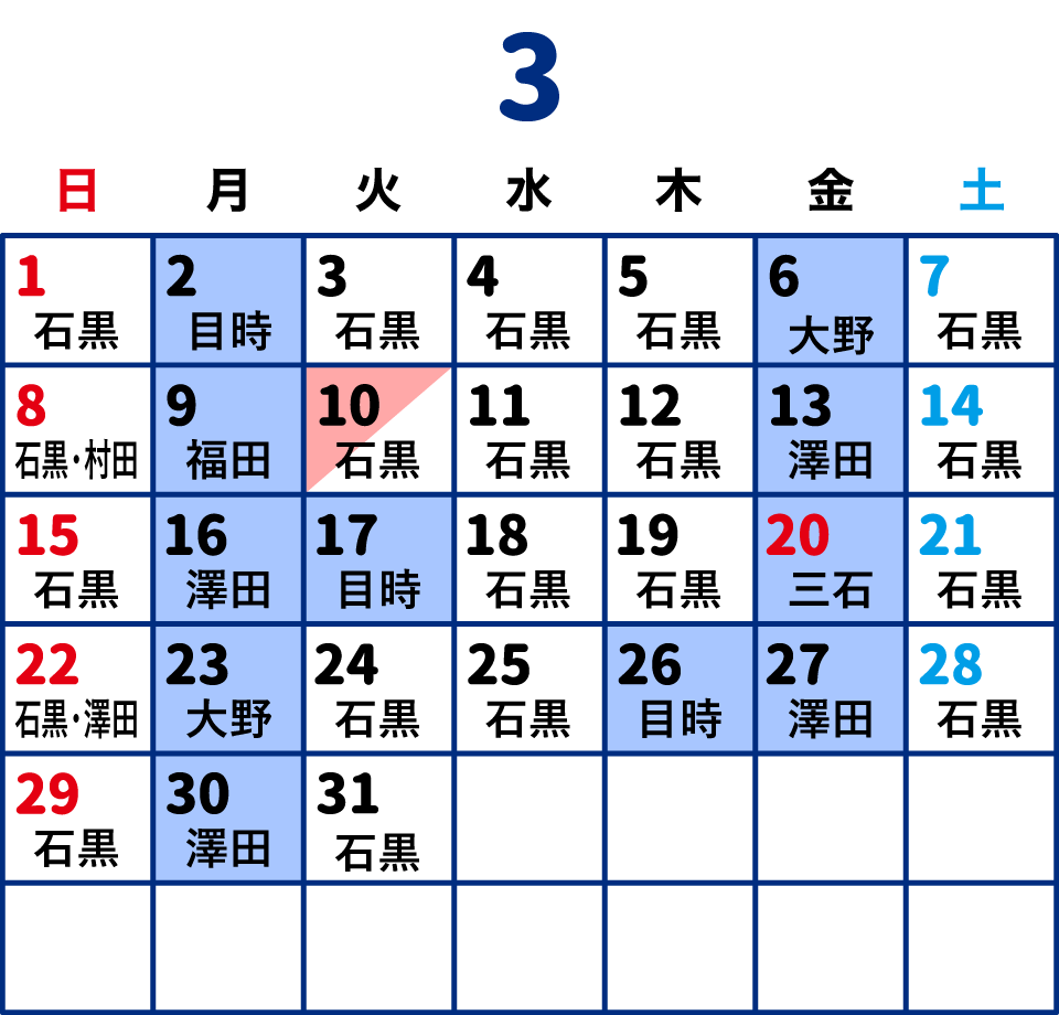 | 10:15~19:00 | ● | ● | ● | ● | ● | ● | ● | ● |